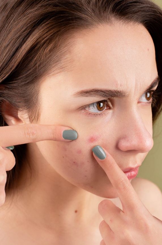 Acnes along the jawline or in the chin can say a lot of a hormonal imbalance.