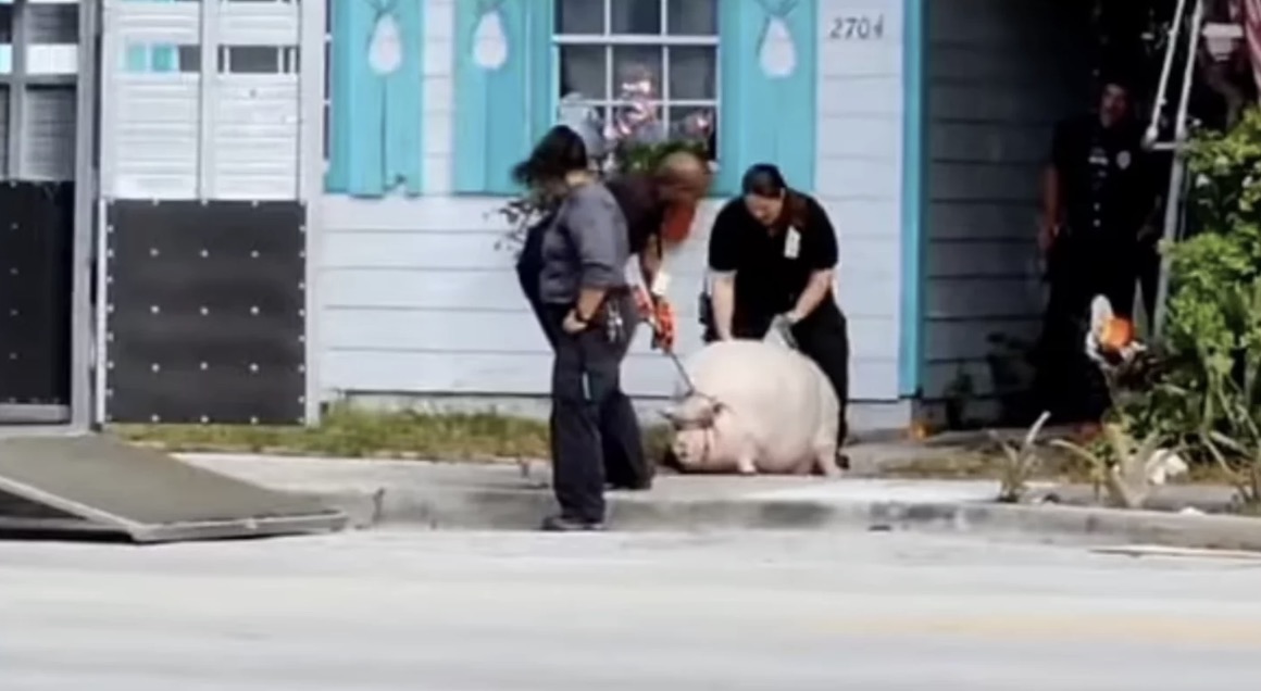 A distressed woman in Florida sobbed as her cherished ‘severely obese’ pet pig, Pork Chop, was taken into custody by animal control due to concerns about the 400-lb porker’s health.