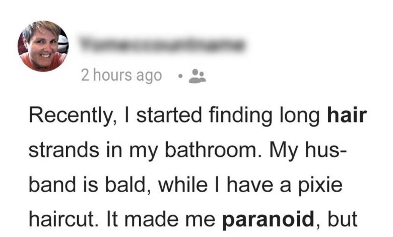 A 29-year-old woman opened up on Reddit about finding someone else’s hair in her bathroom. She noticed the strands were long, which meant they didn’t belong to her or her husband.