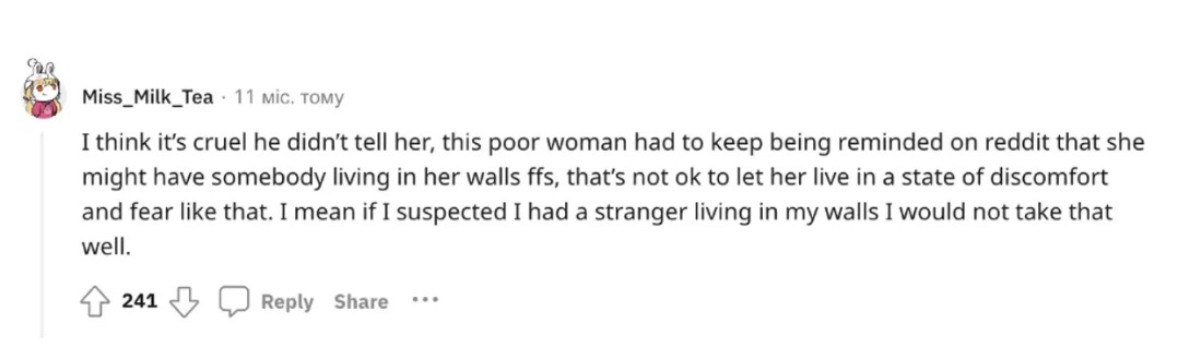 When other Reddit users read the woman’s post, they shared their opinions in the comments section. Many people thought it was strange that the man hid his friend’s visits from his wife. One user said: