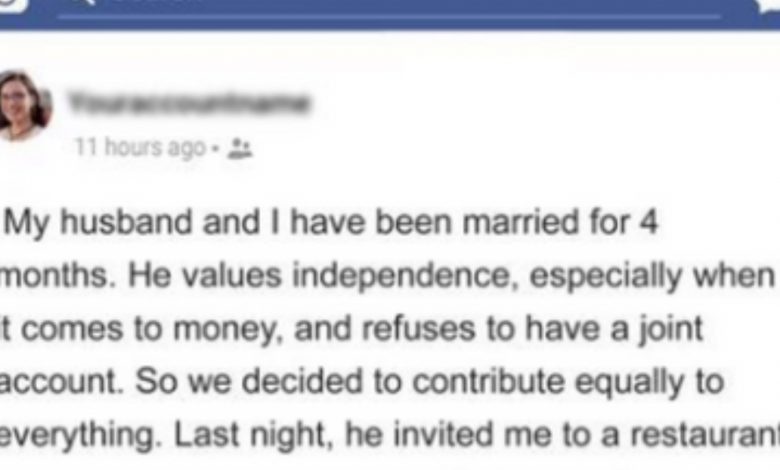 A woman sought the help of Reddit community members after she refused to pay for her husband’s meal at a restaurant. Prior to the dinner, they agreed to have separate finances and pay for everything equally. However, the husband didn’t think his wife would actually let him cover his share of the meal.