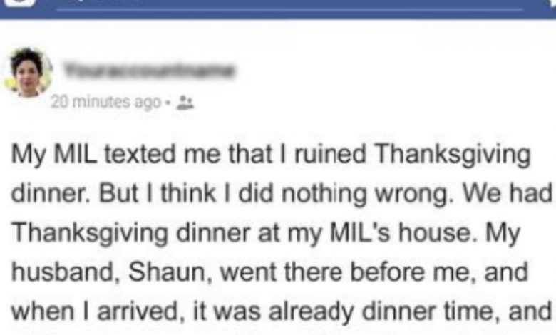 My Mother-in-Law Claims I Ruined Thanksgiving Dinner