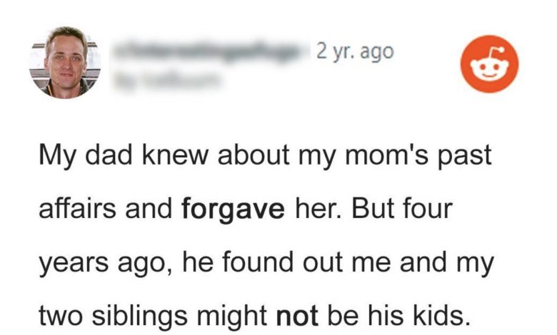 The DNA test results revealed that two of the man’s three children were his. The original poster was the child whose DNA results showed his father was someone else. OP revealed that his father divorced his mother after that and moved out with his siblings.