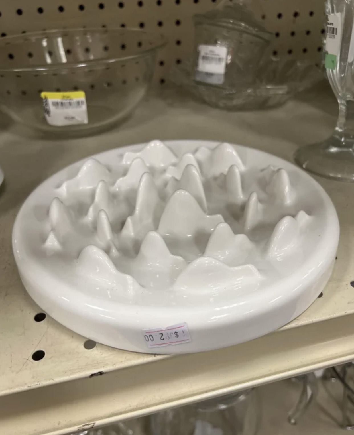 Shopping in thrift stores can be quite an adventure. You can wander along the aisles, finding the most unique pieces. While in the homeware section, a person saw an odd object that they found incredible. They described it as ceramic or porcelain and had protruding shapes throughout a flat plate.