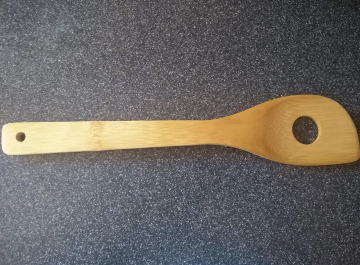Wooden spoons belong in the kitchen. However, one person was puzzled when they found a spoon with a round hole in the middle. They took a picture, determined to discover its use.