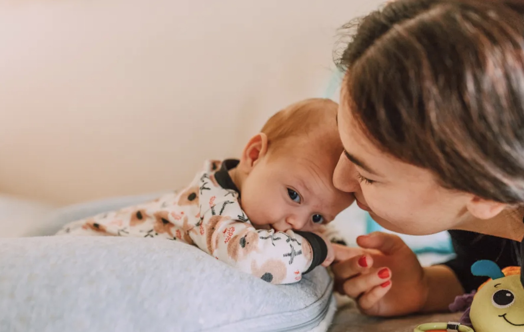 “I never feel compelled to check for the simple fact that I trust my nanny. However, I was having a rough day yesterday and wanted to see what the little ones were up to so I decided to pop in. My nanny was sitting on my bed, rocking my son, and attempting to breastfeed him.”