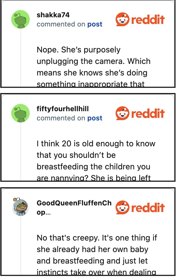 The OP was disgusted. “I almost felt sick, it just seemed so inappropriate,” she expressed. The mother confronted the nanny, who was highly apologetic, saying she “just wanted to help” her because of her lactation issues. But deep inside, OP was still unmoved. She decided to dig through older footage and discovered more unsettling details.