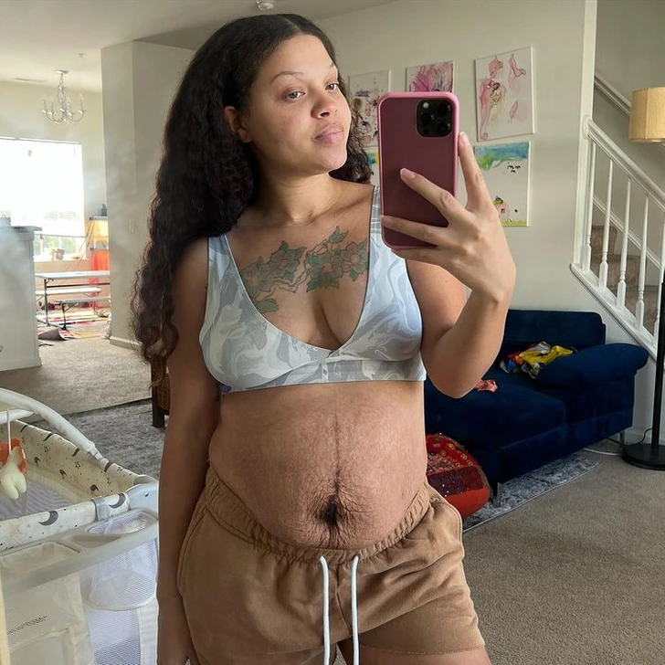 Danisha, a mom of 4, recently started sharing her journey about accepting her body on social media. At first, she was really ashamed and constantly tried to hide her postpartum belly, but with her last baby, she wanted a change.