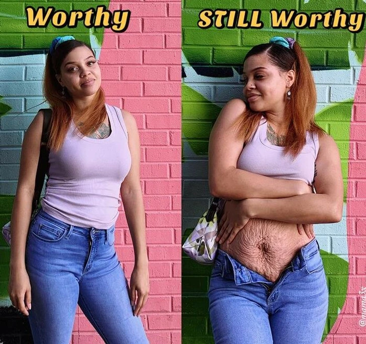 Regardless of what we look like on the outside, whether we differ in skin color or weight, all people are special in their own way, and our bodies do an amazing job at keeping us alive. In an effort to encourage others around her, this mother points out, “Whether you choose to cover your belly or not, you’re still worthy, still beautiful.”