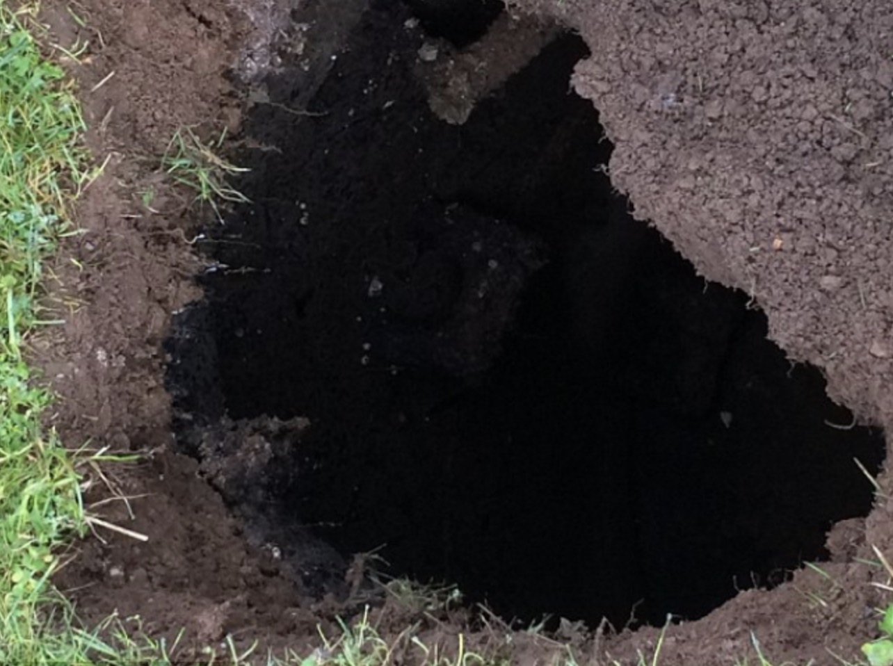 The homeowners fervently hope that another cavity won’t materialize, posing a potential hazard. Reluctantly, and in the absence of concrete answers, they’ve resorted to cautionary signs to prevent any unsuspecting individuals from stumbling into the mysterious void.