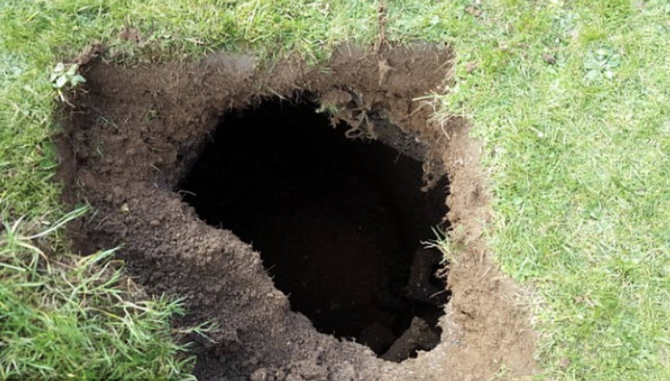 As Emma James diligently mowed the front yard with her lawnmower, an unexpected discovery halted her routine, a mysterious hole in the ground. Over the course of the day, this innocuous pit expanded steadily, reaching an unexpected depth of 2 meters. Adding to the intrigue, the hole contained a peculiar surprise, weathered, rusty steps.