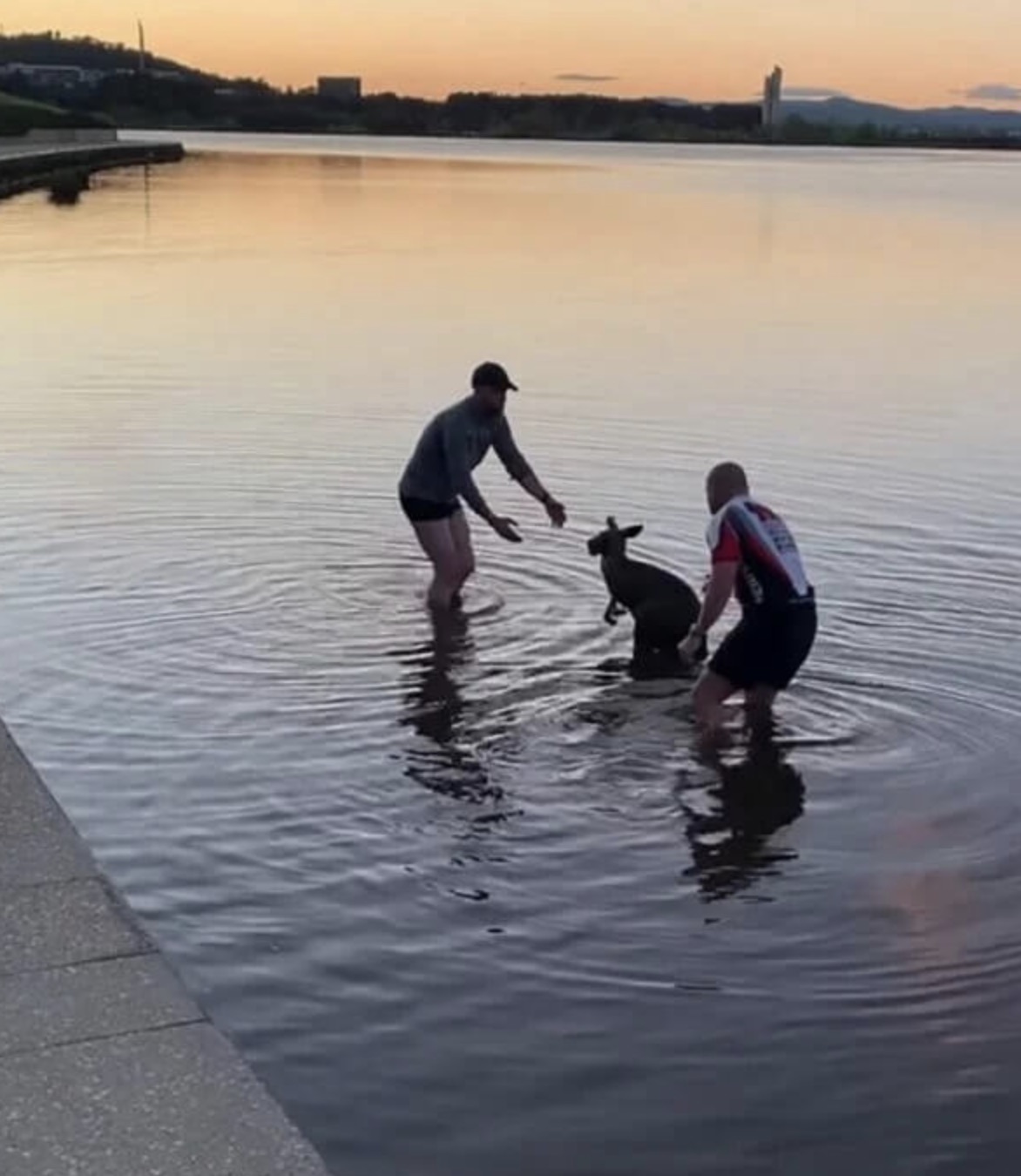 Just like us, animals have emotions and know how to show their gratefulness to people who help them. Therefore, when a kangaroo was saved from a freezing water lake by two heroic passers-by, he decided to use his own way to thank them. and this kangaroo shakes hand these guys