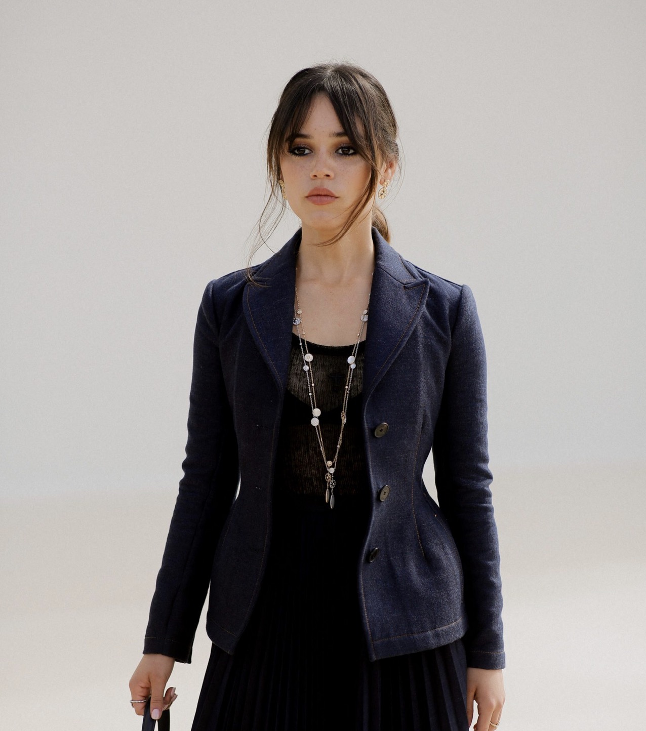 Furthermore, Ortega worked on her makeup and hairstyle. The 21-year-old artist returned to her previous chestnut hue for her locks and let strands frame her face. Instead of deep black eyeshadows, she prefers to emphasize her eyes expressively with eyeliner and accentuate her lips with a soft nude lipstick.