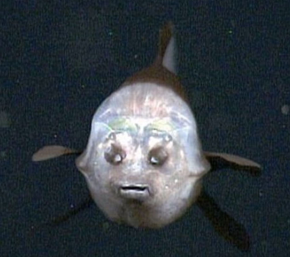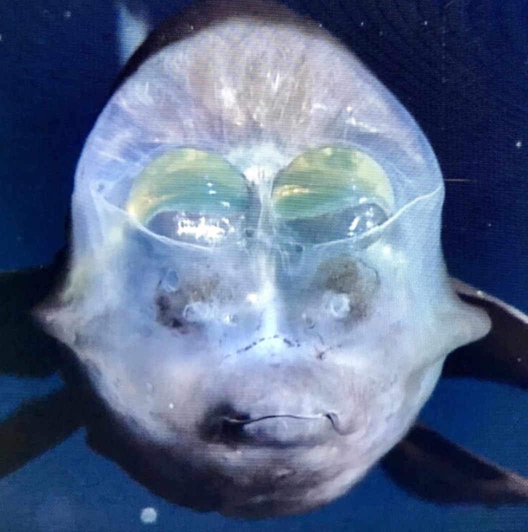 The cranium is transparent, and the ocular system and other organs are easily visible. The Macropina microstomia is a curious fish with eyes that can move both vertically and horizontally. You can also see two nostrils above the mouth in the image. The translucent forehead gives the creature a benefit for hunting because it can cover a large number of visual fields, according to the experts that closely examined the specimen.