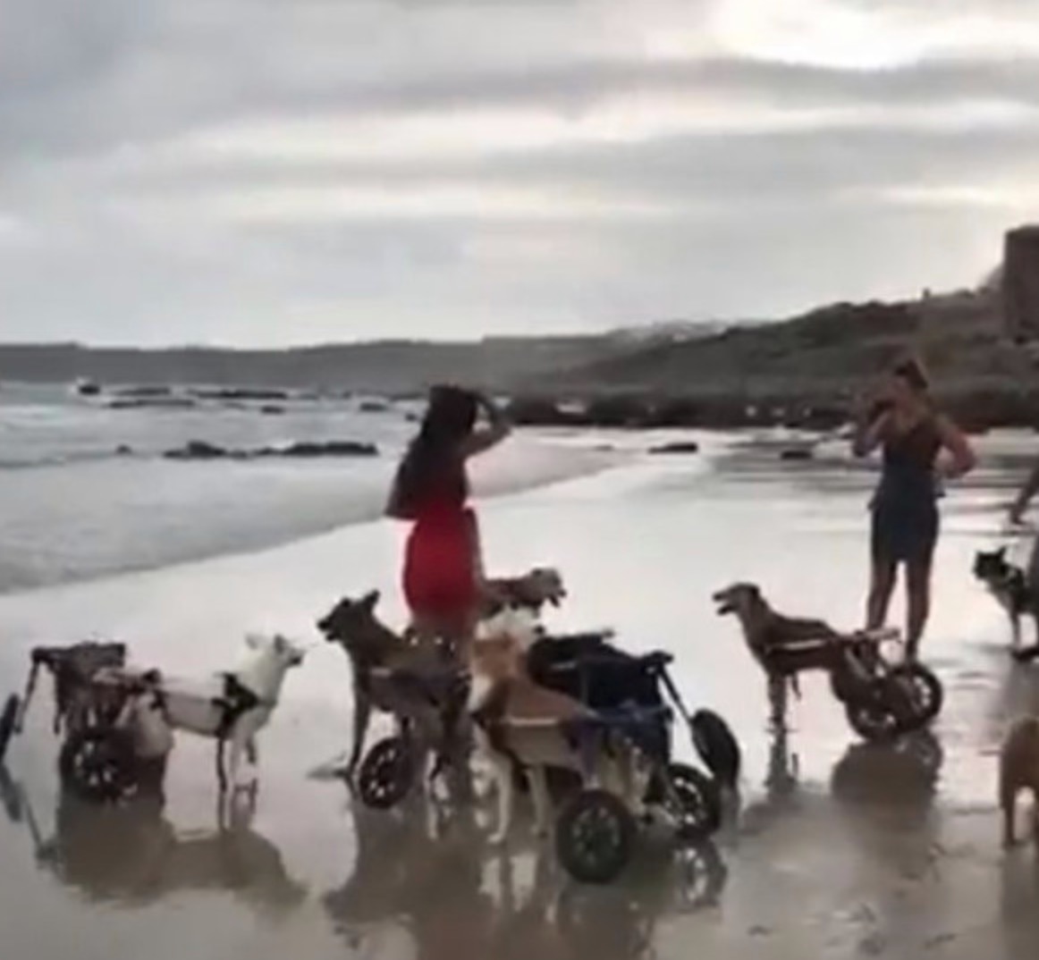 Many dogs that live with their owners may not be as happy as the stray dogs that live together or in the event that we have disabled dogs here.There are so many disabled dogs out there and the fact that many of them here are enjoying something that might be completely normal and part of another dog’s daily routine is amazing, this group of disabled dogs couldn’t be happier running around on the beach For the first time, Salima Kadaoui decided to take 18 dogs out of the SFT Animal Sanctuary that she founded in Tangier, Morocco, for a day trip.