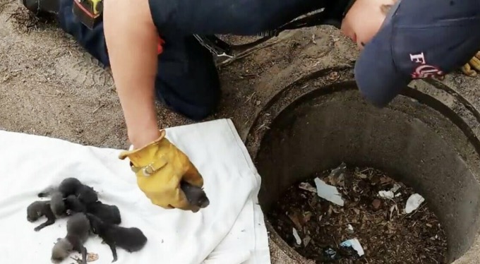 Eight tiny, black-coloured dog pups had been found stuck in a drain well. Those who made the call believed that a litter of black Labrador pups had been abandoned in the pipe by their owners.