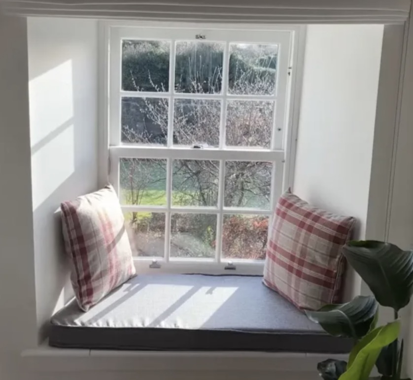 Plasterboard gave the stone cottage’s interior a more finished look, allowing him to visualize the rooms’ future functions, but the bedroom felt like a prison cell before installing the sashing window casing.