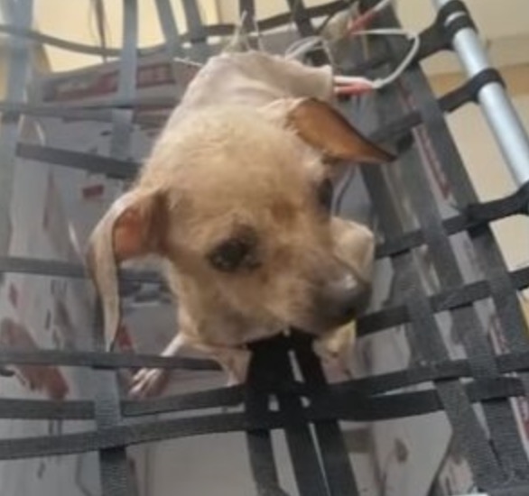 Meet Tootsie, a small and frangible dog who is a survivor of the dog meat truck trade. Tootsie, weighing only 2.5 kg, was rescued in a deplorable condition. She had an ear bacterial infection, systemic cutaneous mite infection, and was also combating distemper. To make matters worse, she had degenerative spinal disease with bone spurs in her spine that made it impossible for her to straighten up or move freely.