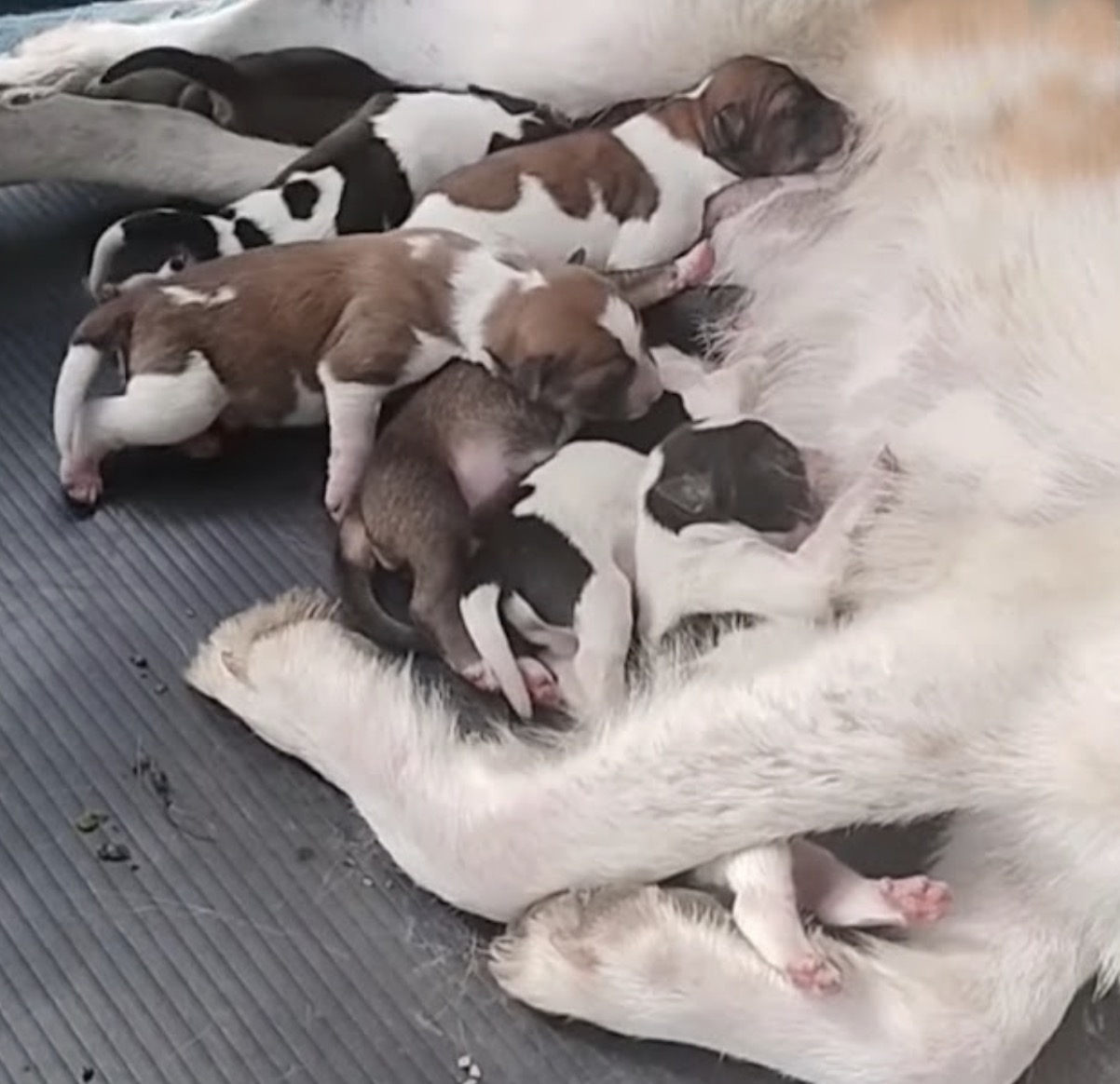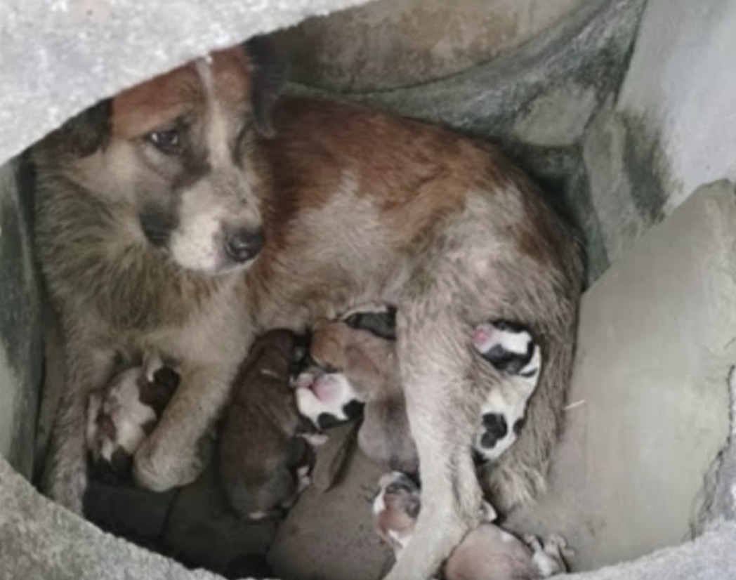 Fortunately, the caring woman saw them and ensured their safety. The mama dog and her puppies are safe and sound in a temporary shelter.
