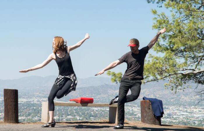 #18 Emma Stone and Ryan Gosling rehearsing a dance on the set of La La Land