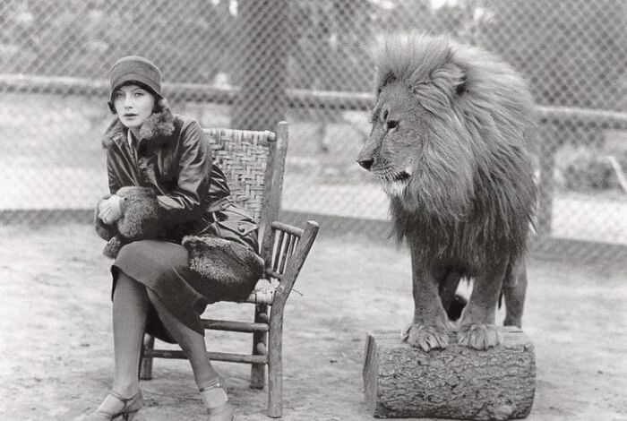 #25 Although this isn’t a behind-the-scenes picture, it’s still fascinating: Famous lion from the Metro-Goldwyn-Mayer logo and actress Greta Garbo