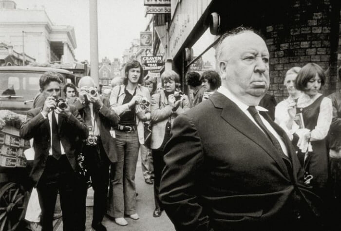 #7 Alfred Hitchcock during the Frenzy shooting
