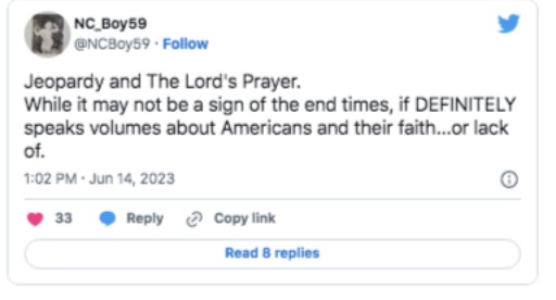 “The Lord’s Prayer growing up was like knowing The Pledge of Allegiance. You just did,” one tweet says.
