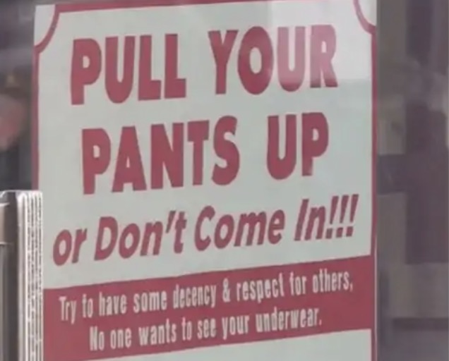 According to sources, the spectacle rapidly went viral. One of the store’s managers, Chad Gilbert, defended the sign, stating, “I realize wearing pants low is a fashion statement for some, but it doesn’t work for me, and I find it somewhat offensive.”