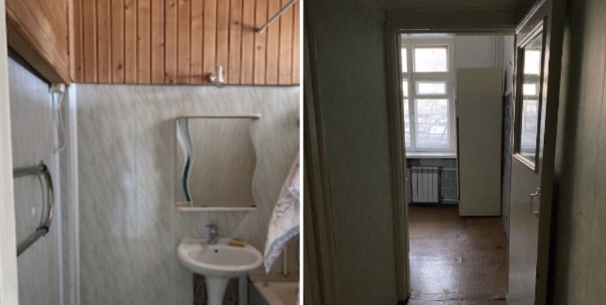 Soon, Alisa started working hard and diligently! There is no door between the corridor and the living-room. The whole territory constitutes 74 square meters and the height is three meters. This is what it looked like before the makeover!