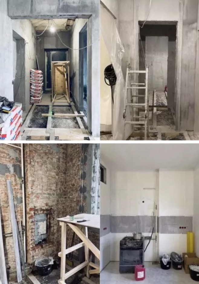 This is what it looked like before. When looking at these photos, it becomes hard to believe that such a place would turn into such an amazing and luxurious house. Let’s start with the corridor.