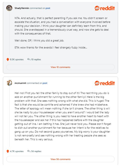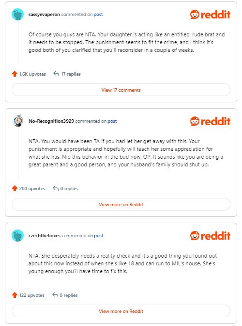 The mother held onto the hope that, through this experience, her daughter would grasp the significance of valuing the contributions made by those around them. Amid the turmoil, the original poster’s daughter sought comfort from her mom’s mother-in-law. At the same time, her actions triggered an unexpected reaction from her husband’s family.