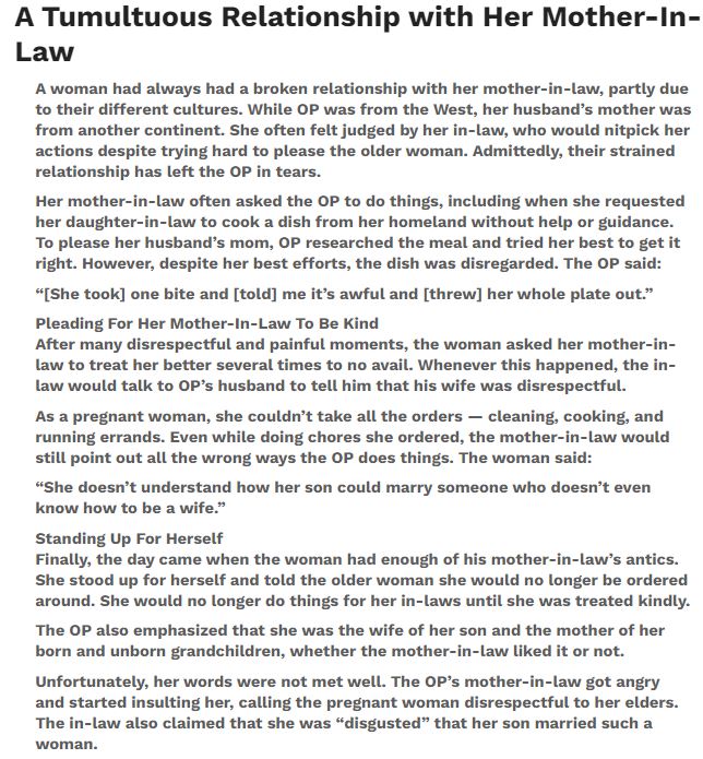 The woman shared that she and her mother-in-law have not been on the best terms. Things worsened when the OP’s in-law moved in with her and her husband six months after her father-in-law passed away.
