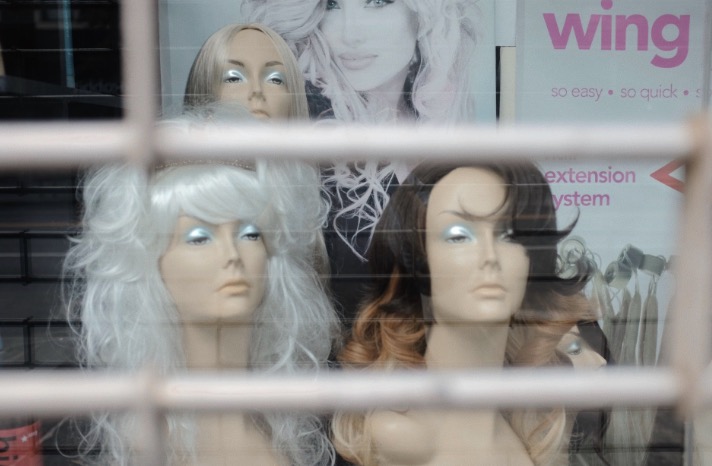 Pointing to the door, the woman exclaimed, “They took away my wig!”