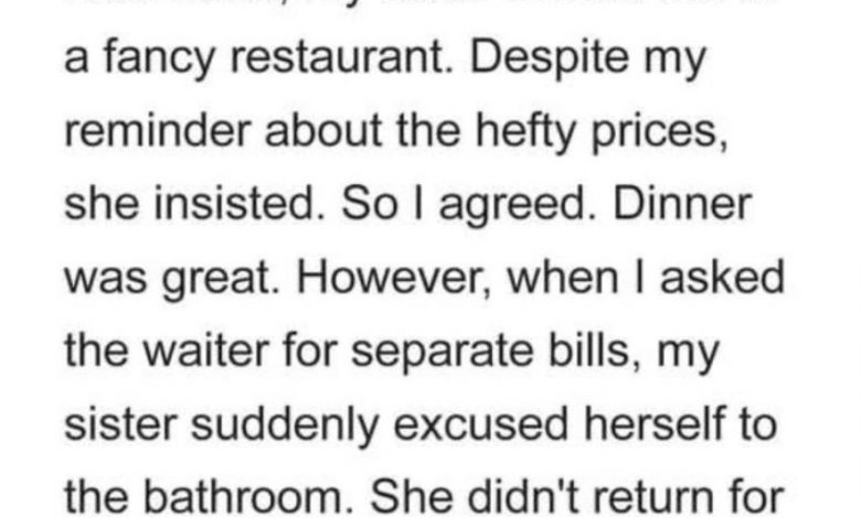 My Sister Invited Me to an Upscale Restaurant, Vanished into the Bathroom When It Was Time to Pay the Bills