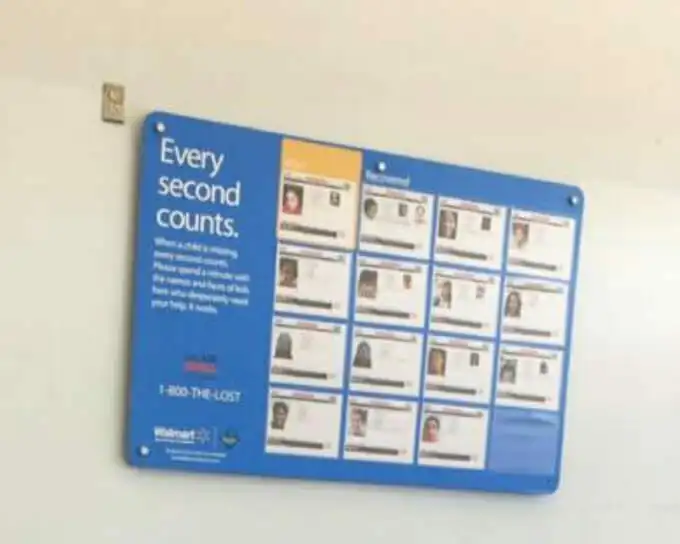 In large letters it said, “Every second counts.” Next to those words were pictures of missing kids.