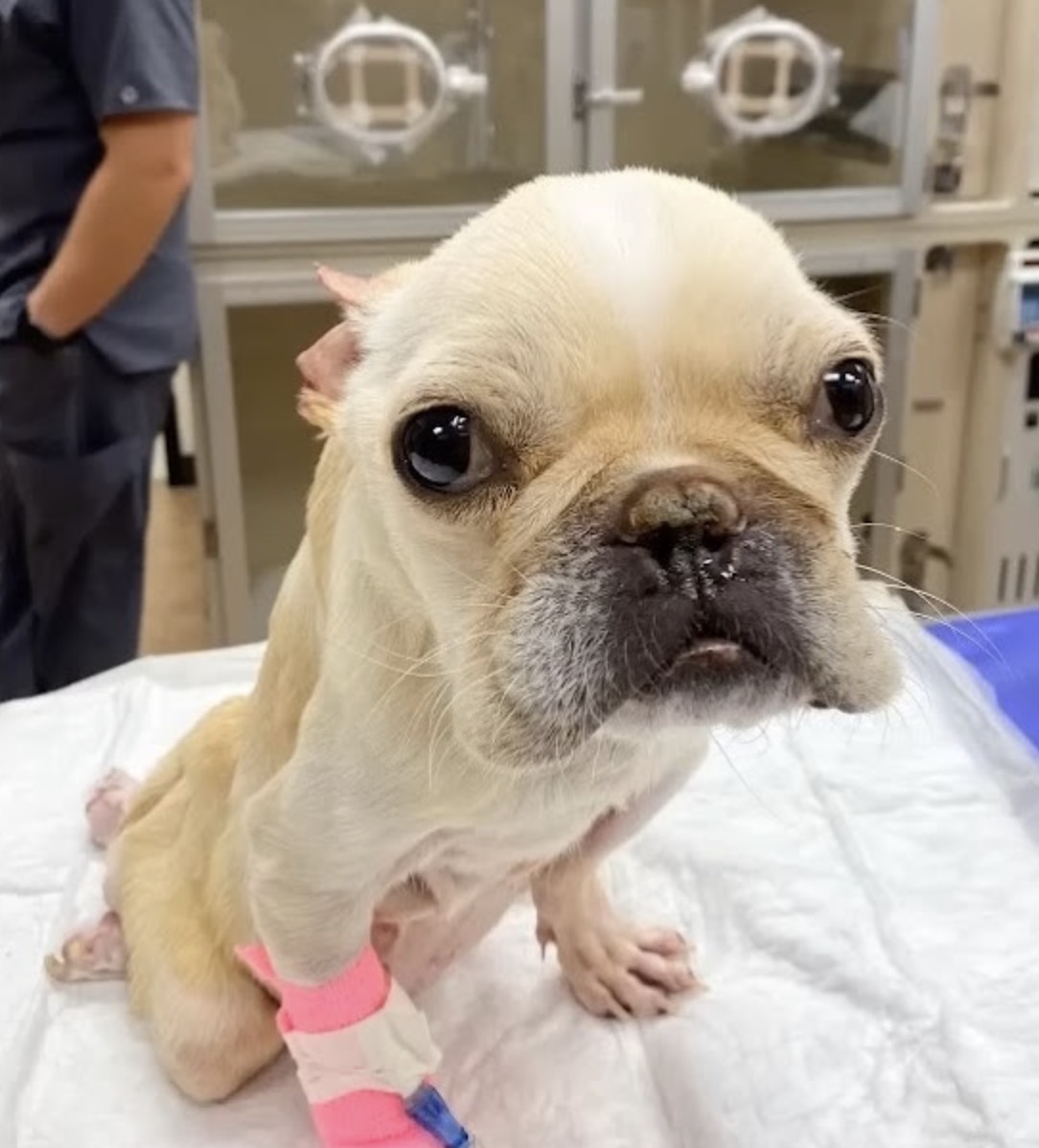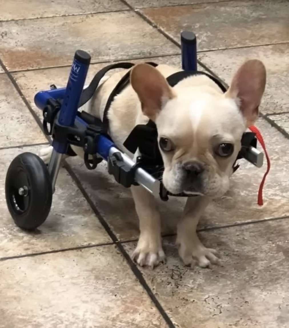 Thankfully, a good-hearted girl adopted the poor dog, who had been battered so badly that it was paralyzed on its rear legs.