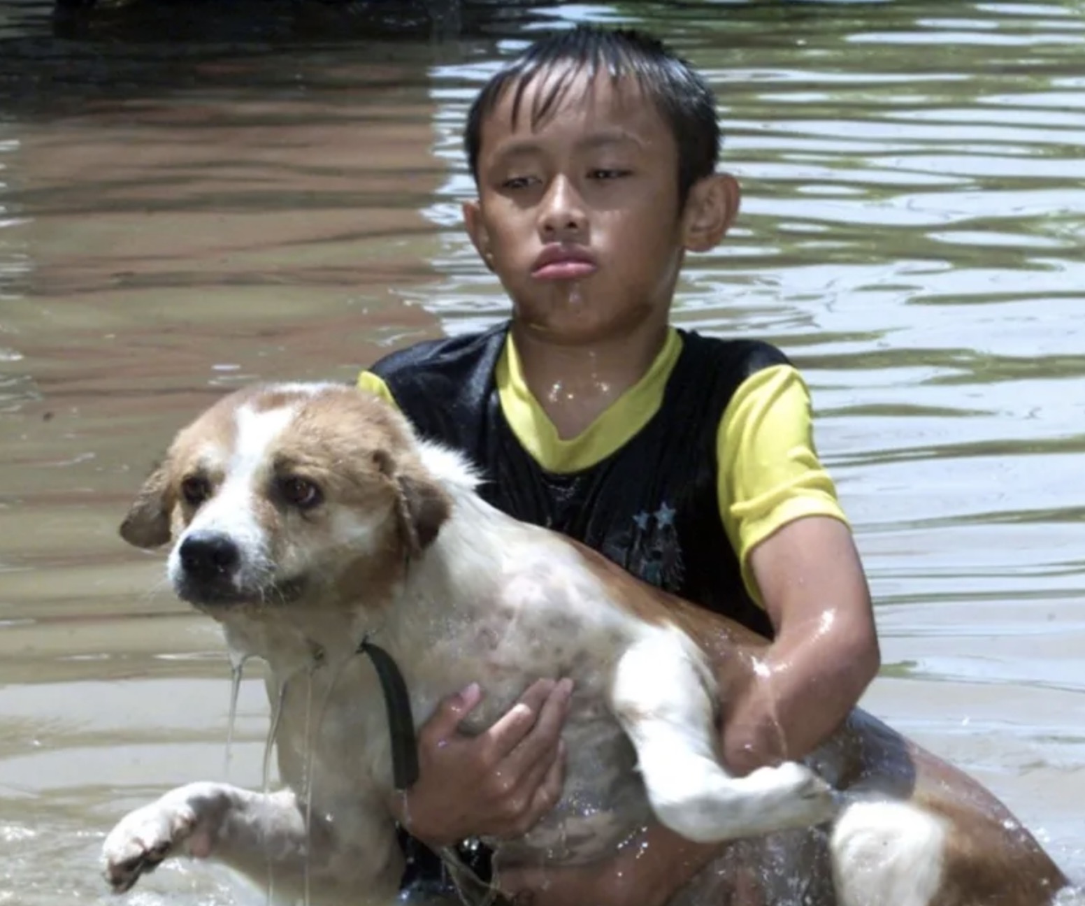 Young Hero: The Valiant 7-Year-Old Who Carried His Loved Pet Dog Despite the Torrential Rain