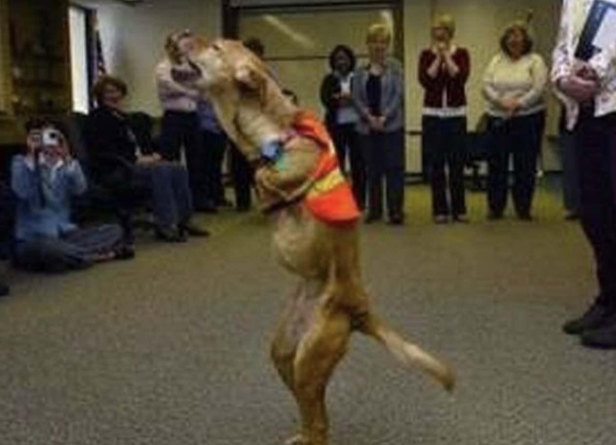 While Mrs. Jude encouraged Faith to stand straight by performing jumping exercises. Faith has stronger hind legs, which makes it easier for the dog to balance when standing straight.