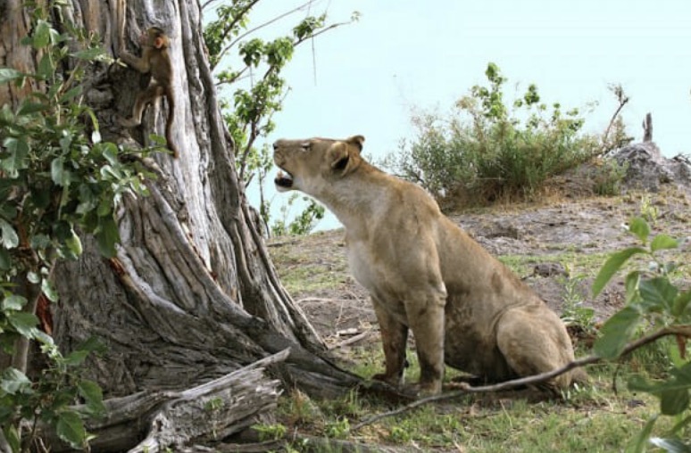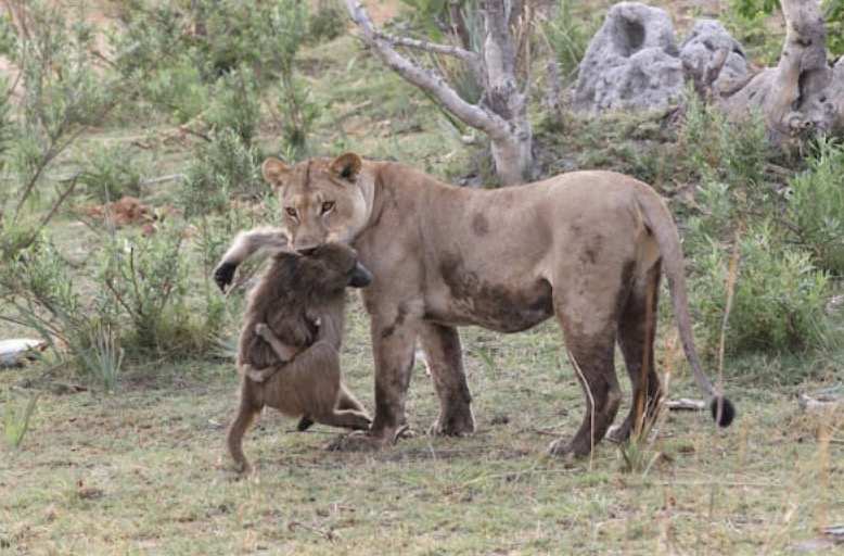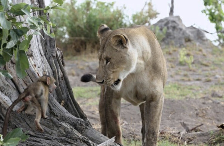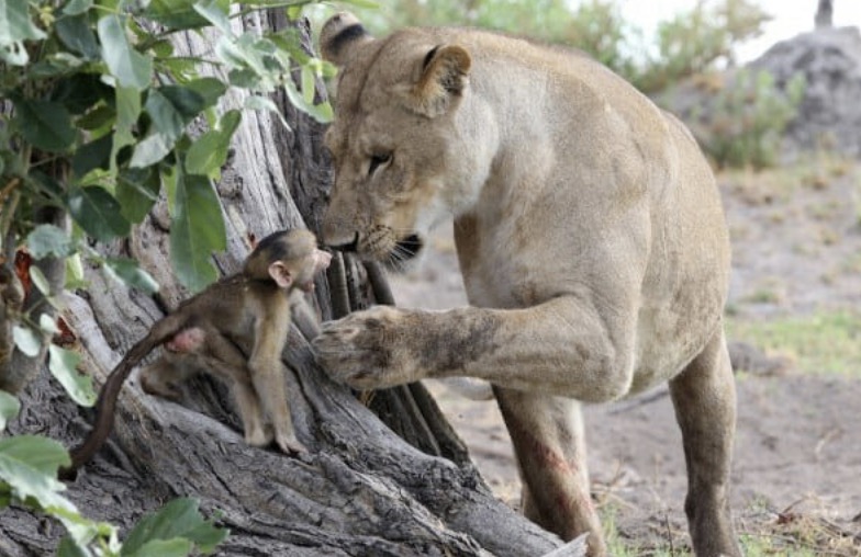 The photographers thought that the lioness was going to devour the little baboon immediately.