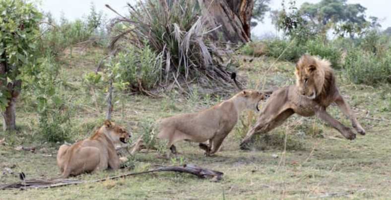 It wasn’t long before a male lion showed up but the lioness chased him off quickly. You can see it in this picture.