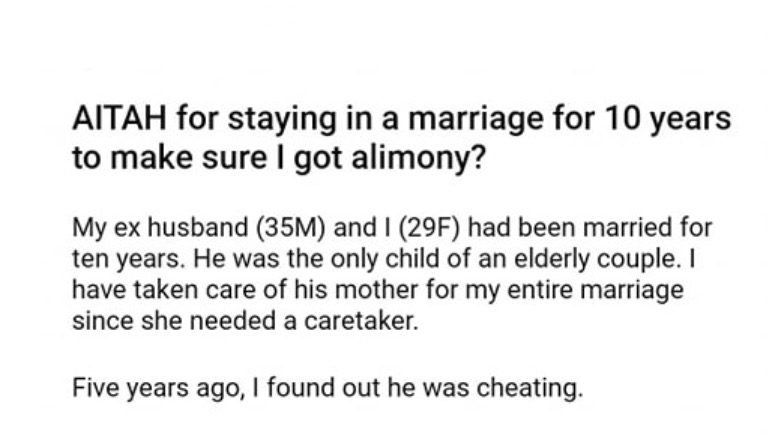 AITAH For Staying In A Marriage For 10 Years To Make Sure I Got Alimony