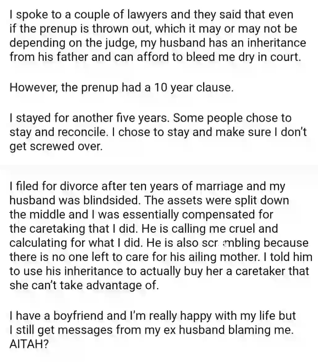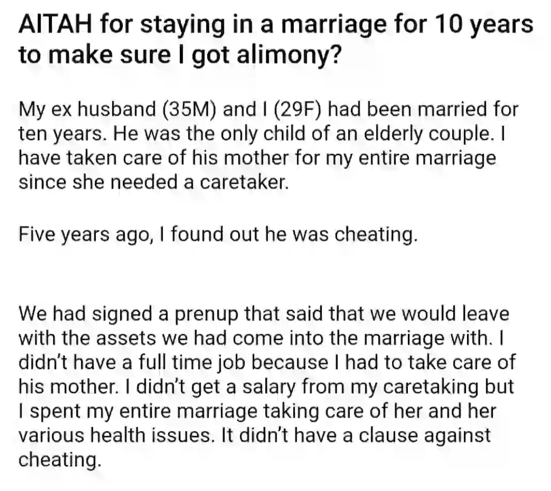 AITAH For Staying In A Marriage For 10 Years To Make Sure I Got Alimony