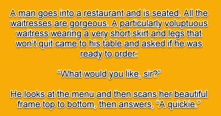 Waitresses have pretty tough jobs. No matter what guys who work or worked as waiters say, ladies have to deal with things they don’t even think about. So many times attractive women are harassed and hit on by guys with one thing on their minds (and it’s not food or drink). But, for the most part, these hard-working professionals keep their cool and even manage to deliver “service with a smile,” despite the fact they are probably seething with rage on the inside. However, the waitress in this joke doesn’t hold back when it comes to letting one customer know exactly what he can do with his “order.”