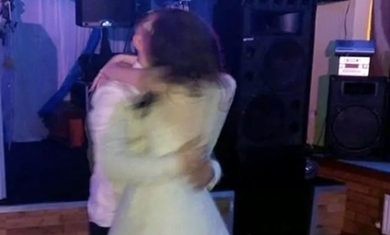 They had just gotten married and were on the dance floor when the guests saw something at the bride’s feet.
