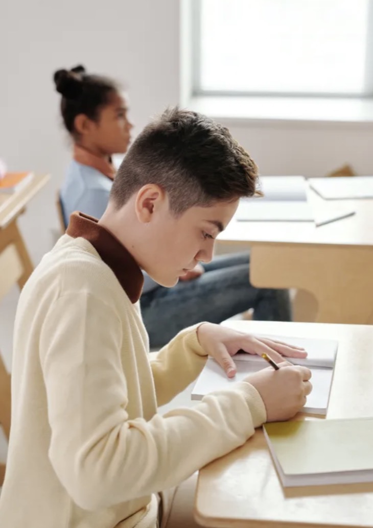 A hush fell over the class as everyone turned to see who was interrupting their lesson. A boy walked in with his eyes fixed on the floor and took his seat without uttering a word or looking up at the teacher.