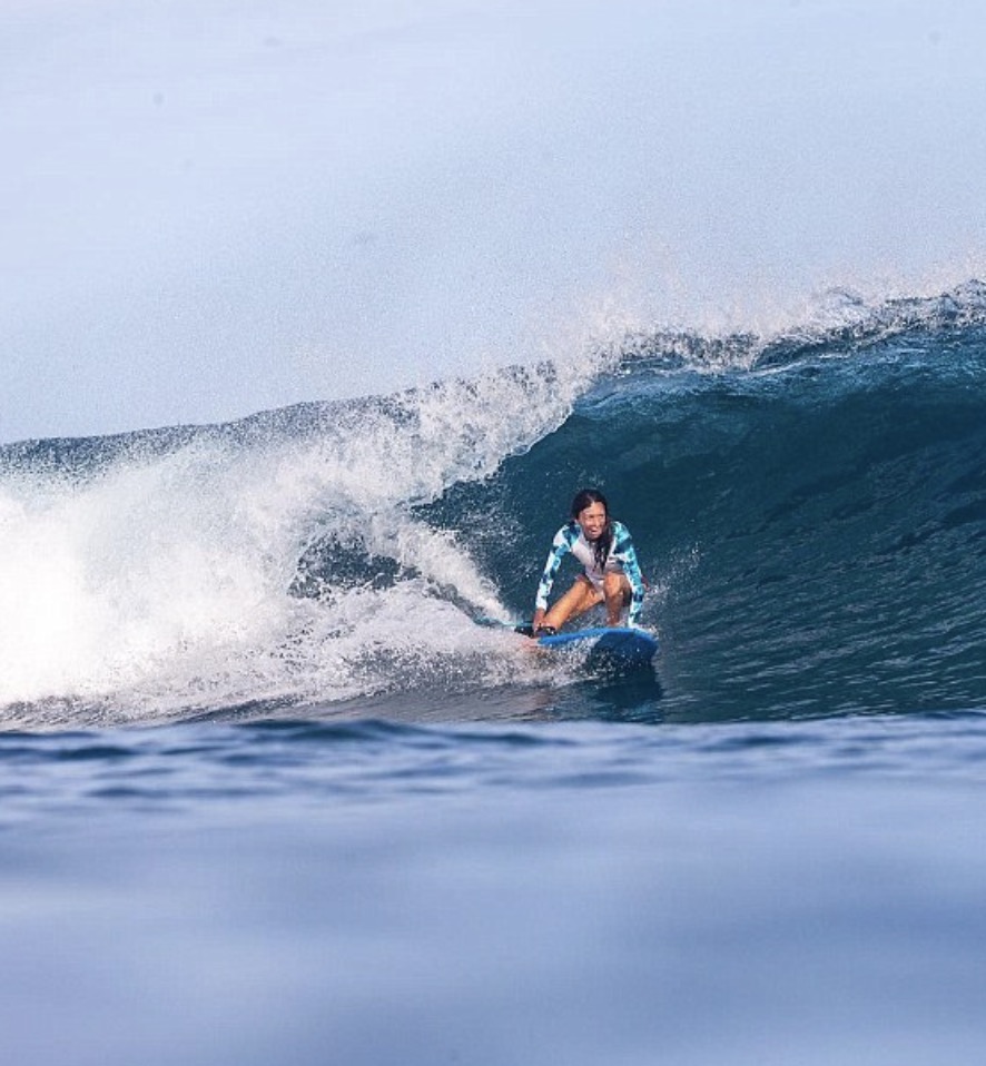The mother-of-one shared a number of happy snaps of herself on a board to Instagram, riding the waves with a ear-to-ear grin.