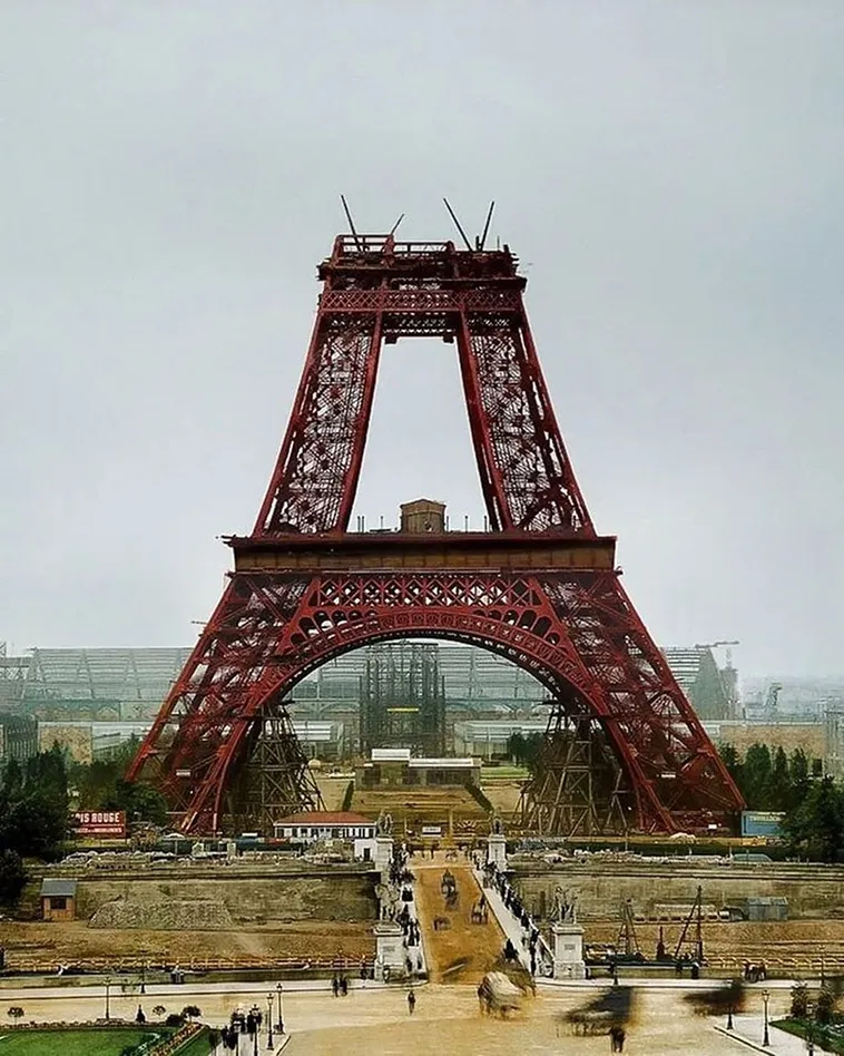 In 1887, the Eiffel Tower was not yet finished, but it already had its red color which it will keep until 1906. In 1887, the Eiffel Tower was not yet finished, but it already had its red color which it will keep until 1906