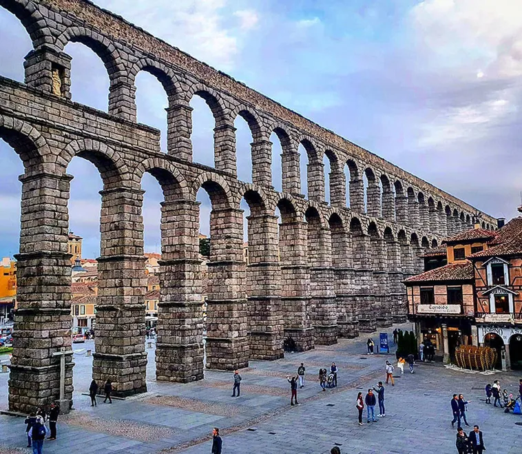 The Aqueduct of Segovia is a Roman aqueduct in Segovia, Spain. It is one of the best-preserved elevated Roman aqueducts and the foremost symbol of Segovia, as evidenced by its presence on the city’s coat of arms. The aqueduct is built of unmortared, brick-like granite blocks.