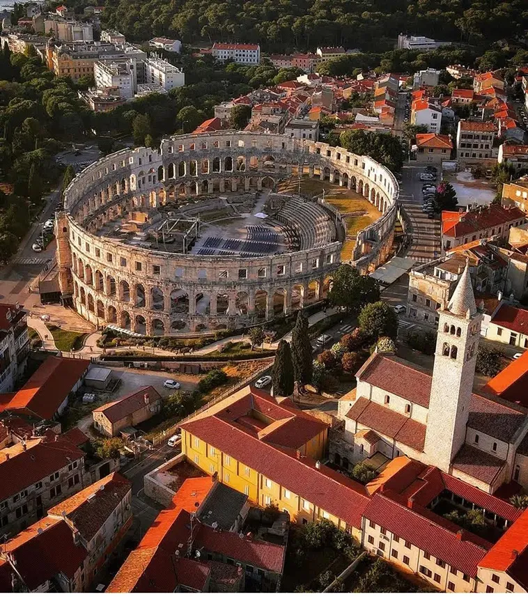 The Pula Arena is a Roman amphitheatre located in Pula, Croatia. It is the only remaining Roman amphitheatre to have four side towers entirely preserved. It was constructed between 27 BC and AD 68, and is among the world’s six largest surviving Roman arenas.