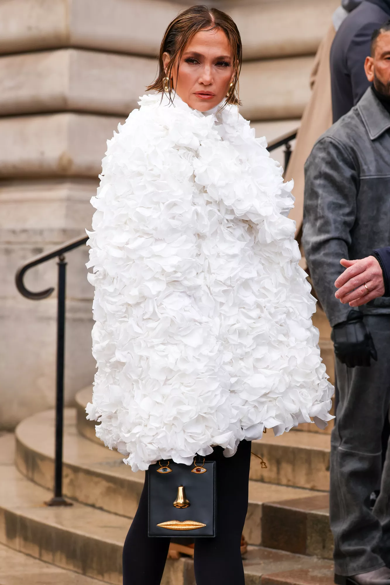 Jennifer Lopez Steals the Show in Schiaparelli Jacket Made of Real Rose Petals at Paris Fashion Week
